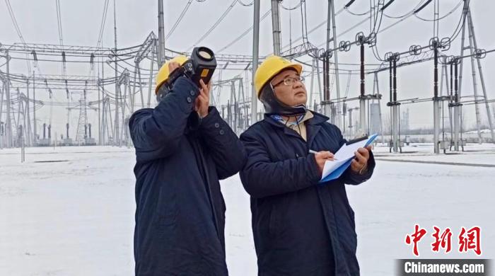 東明變值班員開展雪后測溫工作。吳善 攝