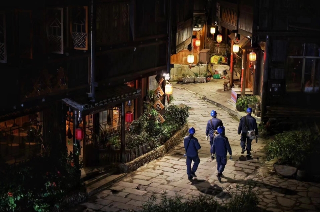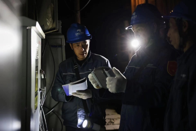 工作人員對(duì)“村晚”主要場(chǎng)所供電線路設(shè)備進(jìn)行巡視(央廣網(wǎng)發(fā) 陸雯 攝)