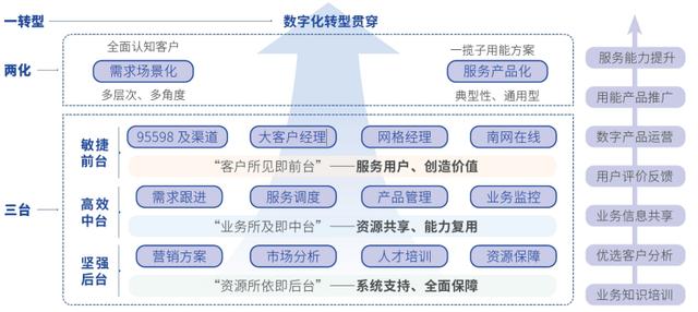以“三臺兩化一轉(zhuǎn)型”為抓手,全面推進現(xiàn)代供電服務(wù)體系建設(shè),不斷優(yōu)化前、中、后臺協(xié)同運作機制,暢通企業(yè)內(nèi)循環(huán)。實體化中臺建設(shè)穩(wěn)步推進,“基礎(chǔ)+增值”用電服務(wù)產(chǎn)品不斷豐富,服務(wù)效率不斷提升、用戶獲得感、幸福感和安全感不斷增強。