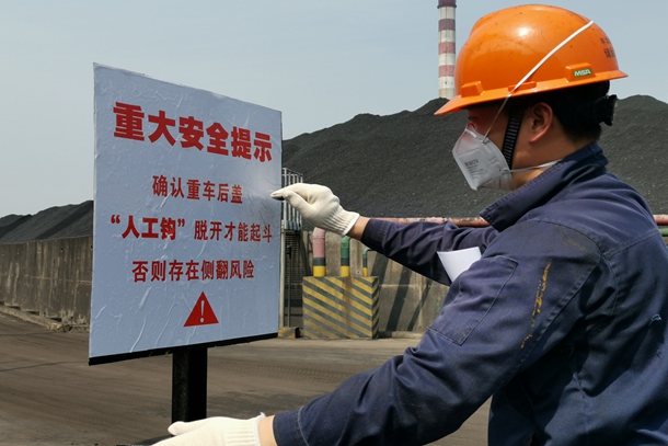 中國電力網(wǎng)訊 近日,國家能源集團(tuán)豐城發(fā)電公司儲(chǔ)運(yùn)部機(jī)務(wù)檢修班利用卸煤溝暫時(shí)停卸時(shí)間,在待卸位和卸車位各加裝一塊安全提示牌,通過“可視化”手段,提醒煤車司機(jī)規(guī)范操作,確保卸煤環(huán)節(jié)安全。