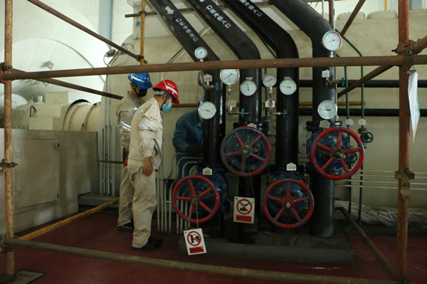 攻堅(jiān)克難,保機(jī)組穩(wěn)定運(yùn)行。大鵬之動(dòng),非一羽之輕也;騏驥之速,非一足之力也。盛夏的廠房?jī)?nèi)異常悶熱,機(jī)組設(shè)備發(fā)出來(lái)的熱量讓人喘不過(guò)氣來(lái),就在這種條件下,該廠干部職工為了快速消除缺陷,不懼困難,連續(xù)奮戰(zhàn)在現(xiàn)場(chǎng)??偣こ處煻诖蠹易⒁獍踩?,輪換休息,防止中暑,并協(xié)調(diào)解決工器具及材料,查看作業(yè)環(huán)境,檢查安全措施;設(shè)備部積極與哈爾濱電機(jī)廠取得聯(lián)系,請(qǐng)專業(yè)人員入廠探討解決方法,同時(shí)編制安全技術(shù)組織措施方案,解決設(shè)備作業(yè)過(guò)程中遇到的技術(shù)性問(wèn)題,對(duì)設(shè)備作業(yè)過(guò)程中出現(xiàn)的質(zhì)量問(wèn)題提出整改意見(jiàn);安監(jiān)部強(qiáng)化監(jiān)督,從兩票控制措施執(zhí)行、腳手架及現(xiàn)場(chǎng)防爆行燈漏電保護(hù)器的使用情況到確認(rèn)施工現(xiàn)場(chǎng)氫氣含量等無(wú)死角的全程檢查盯守,為消缺工作保駕護(hù)航;發(fā)電部運(yùn)行人員全力配合,嚴(yán)格按照工作票所列危險(xiǎn)點(diǎn)布置安全措施,開(kāi)關(guān)閥門(mén),在檢修期間密切監(jiān)視發(fā)電機(jī)風(fēng)溫,發(fā)現(xiàn)問(wèn)題及時(shí)對(duì)參數(shù)進(jìn)行調(diào)整,在保證機(jī)組安全運(yùn)行的基礎(chǔ)上,為消缺工作創(chuàng)造便利條件;電氣車間電機(jī)班人員分解氫冷器冷卻水出、入口法蘭短接及彎頭,在氫冷器冷卻水入口法蘭處加裝堵板,把配制好的藥液從氫冷器冷卻水出口彎頭處注滿氫冷器。工作中大家分工明確,忙而不亂,盡管現(xiàn)場(chǎng)氣溫高,卻沒(méi)有阻擋大家的干勁。