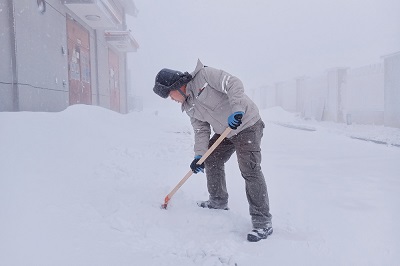 早上7點半,住在升壓站的生產(chǎn)準備小組便已經(jīng)進入室外設(shè)備區(qū)域進行設(shè)備巡視和送出線路覆冰情況監(jiān)測,確保站內(nèi)設(shè)備運行安全。同時清除站內(nèi)道路積雪,鋪好草墊,切實做好防滑措施。