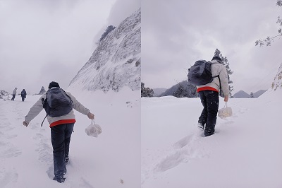 早上八點,項目部范新樂、夏明興、生技部張平帶上給生產(chǎn)準備小組的早餐,驅(qū)車到升壓站山腳下被厚雪陡坡阻礙了前行。三人提著早餐,沿著陡坡,艱難爬坡徒步1公里,將還帶余熱早餐送至生產(chǎn)準備小組人員手中,又一起繼續(xù)忙碌著升壓站首批風機并網(wǎng)準備工作。