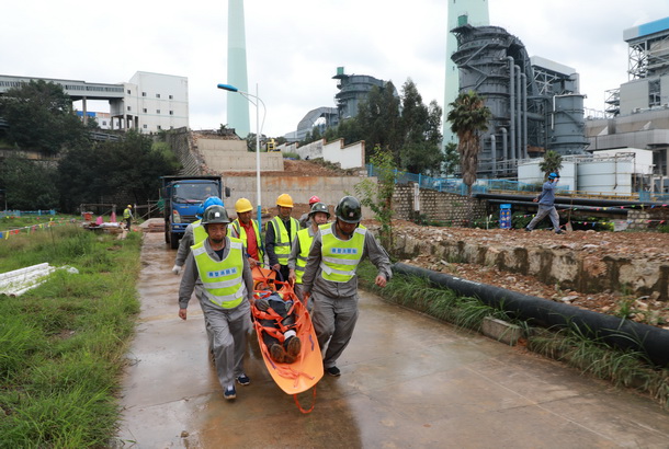 演練在該公司北廠區(qū)路邊山坡冷卻塔周邊正在施工的的五號擋墻展開,因為修補循環(huán)水施工,該處山體裸露,坡體較高。災(zāi)情設(shè)定為因多日降雨造成路邊山坡發(fā)生山體滑坡泥石流災(zāi)害,一人受傷,情況十分危急。演練按照發(fā)現(xiàn)險情、疏散轉(zhuǎn)移、搶險救援、醫(yī)療救治4個環(huán)節(jié)進行,每個環(huán)節(jié)銜接緊密,應(yīng)急反應(yīng)快速到位,緊急救援有條不紊,人員撤離井然有序,演練人員緊密配合,現(xiàn)場緊張有序,圓滿完成了演練任務(wù)。