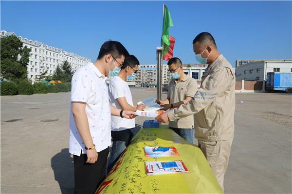 與此同時(shí),長山廠在廠區(qū)醒目位置懸掛條幅,在電子屏上滾動(dòng)播出宣傳標(biāo)語等形式,廣泛宣傳安全生產(chǎn)的重要性。各單位利用安全活動(dòng)日,組織觀看《生命重于泰山》電視專題片,進(jìn)行“安全生產(chǎn)月”活動(dòng)方案學(xué)習(xí)及宣誓活動(dòng),全體人員面對安全旗,舉起右手進(jìn)行莊嚴(yán)宣誓,通過舉行宣誓活動(dòng),營造了安全月活動(dòng)氛圍,增強(qiáng)了職工的凝聚力。