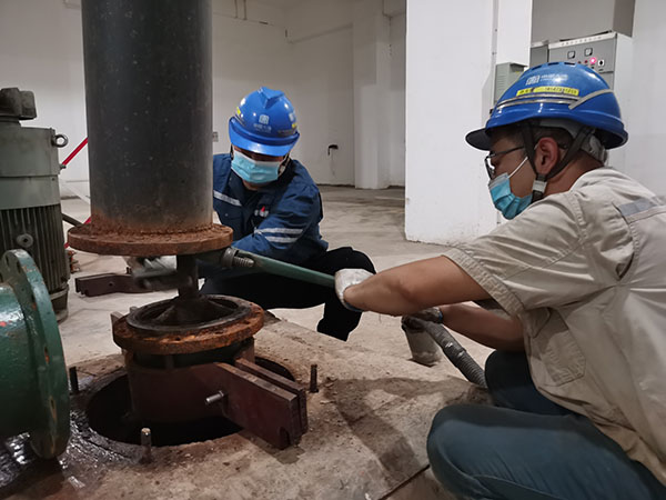 檢修黨員進(jìn)行滲漏排水泵故障維修