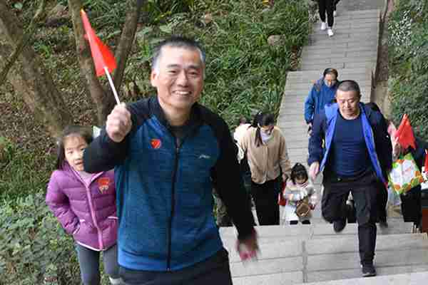 寒風(fēng)凜冽,卻抵擋不住大家火一般的熱情。該公司員工們精神抖擻,神氣昂揚,你追我趕。家屬隊伍當(dāng)中,有的父子同行,有的母女同行,有的全家上陣,其樂融融。不時吸引著路過的人們加入到登高健步走的方陣中來,感受著登高健步走帶來的快樂。