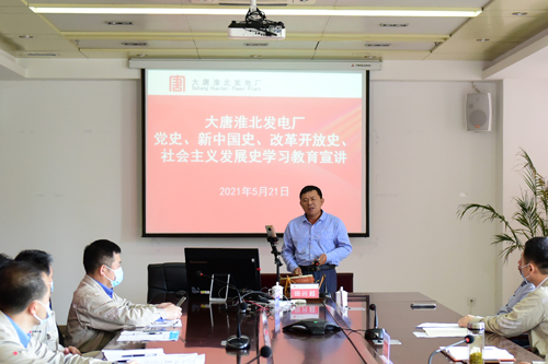 中國電力網(wǎng)訊 為深化“黨史、新中國史、改革開放史和社會主義發(fā)展史”學(xué)習(xí)教育,推動黨員干部學(xué)史明理、學(xué)史增信、學(xué)史崇德、學(xué)史力行,5月21日,大唐淮北發(fā)電廠邀請淮北市“四史”宣講團(tuán)走進(jìn)企業(yè),幫助教育引導(dǎo)黨員干部全面了解“四史”,學(xué)會歷史思維,培養(yǎng)歷史眼光,增強(qiáng)歷史擔(dān)當(dāng),進(jìn)一步堅(jiān)定理想信念,激發(fā)干事創(chuàng)業(yè)熱情。
