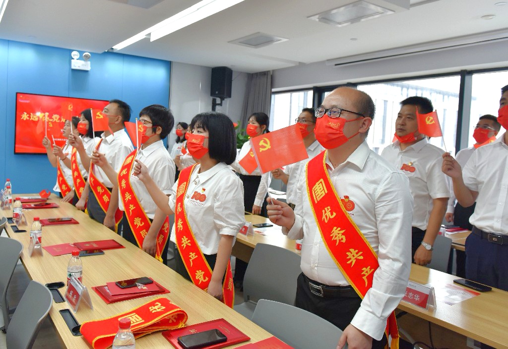 “我志愿加入中國共產(chǎn)黨,擁護(hù)黨的綱領(lǐng),遵守黨的章程……”張宇帶領(lǐng)新黨員宣誓入黨以及全體黨員重溫了入黨誓詞。