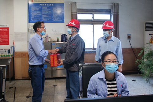 該公司黨委委員、副總經(jīng)理、工會(huì)負(fù)責(zé)人雷小平一行先后來(lái)到燃運(yùn)運(yùn)行集控室、環(huán)保運(yùn)行集控室、職工食堂、發(fā)電運(yùn)行集控室以及控制、燃管、檢修等部門(mén),為生產(chǎn)一線人員、后勤人員送去飲料、涼茶等慰問(wèn)品。在各生產(chǎn)部門(mén)運(yùn)行集控室,雷小平與生產(chǎn)一線人員握手交談,詢(xún)問(wèn)了燃煤接卸、機(jī)組上煤、運(yùn)行調(diào)整及人員值班等情況,對(duì)生產(chǎn)一線人員堅(jiān)守在迎峰度夏第一線戰(zhàn)高溫、斗酷暑、保發(fā)電的奉獻(xiàn)精神表示肯定。他鼓勵(lì)各部門(mén)人員鼓足干勁,齊心協(xié)力做好迎峰度夏各項(xiàng)工作,助力企業(yè)切實(shí)履行好保電保民生的社會(huì)責(zé)任:燃運(yùn)人員要直面當(dāng)前四臺(tái)機(jī)組大負(fù)荷運(yùn)行燃煤頂格消耗的壓力,做好來(lái)煤集中接卸以及機(jī)組上煤工作;集控、環(huán)保運(yùn)行人員要把迎峰度夏各項(xiàng)安全發(fā)電措施做好做實(shí)做到位,確保四臺(tái)機(jī)組大負(fù)荷時(shí)期安全、環(huán)保發(fā)電;檢修人員要加強(qiáng)值班及時(shí)消除設(shè)備缺陷,確保不因設(shè)備問(wèn)題影響機(jī)組帶負(fù)荷。在職工食堂,雷小平對(duì)后勤人員在當(dāng)前疫情形勢(shì)下采取工作餐打包方式,竭盡全力滿(mǎn)足廣大員工早中晚就餐需求所付出的辛苦與努力表示感謝。他還叮囑大家做好防疫及防暑雙重措施,確保人員安全,全力維護(hù)企業(yè)安全穩(wěn)定的良好局面。