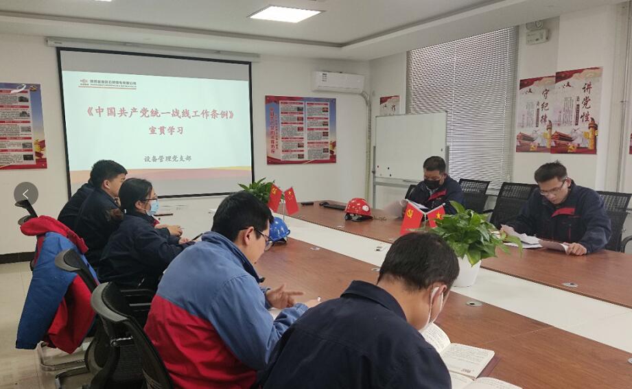中國電力網(wǎng)訊 近日,陜投集團趙石畔煤電公司各黨支部組織黨員干部深入學習《中國共產(chǎn)黨統(tǒng)一戰(zhàn)線工作條例》。通過原文系統(tǒng)學習,深入了解統(tǒng)戰(zhàn)工作對全面建成小康社會、加快推進社會主義現(xiàn)代化和實現(xiàn)中華民族偉大復(fù)興中國夢的重要意義。