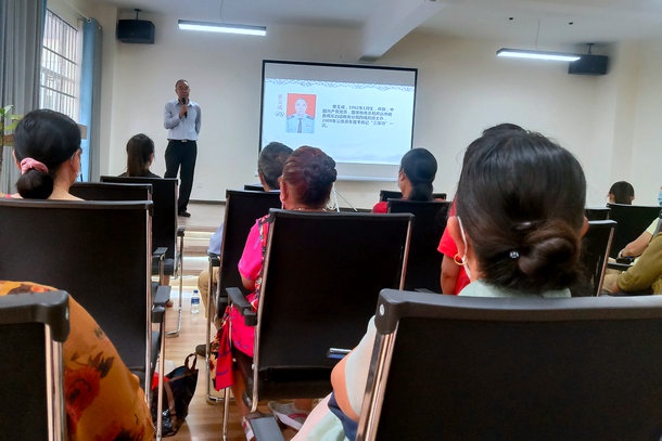 活動(dòng)在《常回家看看》歌聲中拉開(kāi)了序幕。大家一起聆聽(tīng)了開(kāi)遠(yuǎn)市第五屆道德模范普玉成長(zhǎng)年如一日照顧癱瘓母親孝行事跡,懂得了什么是“百善孝為先”,感受到道德的力量、榜樣的力量,接受了一次道德洗禮。齊聲誦讀《孟子·梁惠王上》中的經(jīng)典名句,從經(jīng)典詩(shī)文中,進(jìn)一步感悟孝老愛(ài)親的意義。大家還就如何有效解決盡職履責(zé)與盡孝之間的矛盾,做到“忠孝兩全”進(jìn)行了心得交流,活動(dòng)最后,將鮮花送到道德模范普玉成手中,向道德模范表達(dá)由衷敬意。