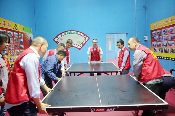當(dāng)天上午9時(shí),該公司招募了來(lái)自三期項(xiàng)目黨支部的10余名黨員志愿者,開(kāi)展了第一次“陜電之光”志愿服務(wù)活動(dòng),為當(dāng)晚即將進(jìn)行的湖南石門(mén)五洲乒乓球俱樂(lè)部“五周年慶典暨健平源杯”乒乓球團(tuán)體賽布置場(chǎng)地?;顒?dòng)中,志愿者們齊心協(xié)力將乒乓球臺(tái)、比賽圍欄以及其他比賽用具等抬至規(guī)定的位置,精心布置乒乓球團(tuán)體賽活動(dòng)場(chǎng)地,展現(xiàn)了無(wú)私奉獻(xiàn)、團(tuán)結(jié)友愛(ài)、助人為樂(lè)、積極向上的志愿風(fēng)采。