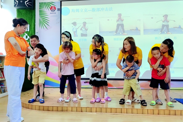 “我來試一試。”筱筱在醫(yī)生的一番示范后,積極上臺(tái)學(xué)習(xí)被氣道異物梗阻的自救方法。“醫(yī)生阿姨,我也要試一試。”孩子們躍躍欲試。“我家娃回來一直在唱防溺水兒歌,知道下水游泳需要大人陪伴。”一場專業(yè)有趣的安全知識(shí)互動(dòng)課一下抓住了孩子的心。