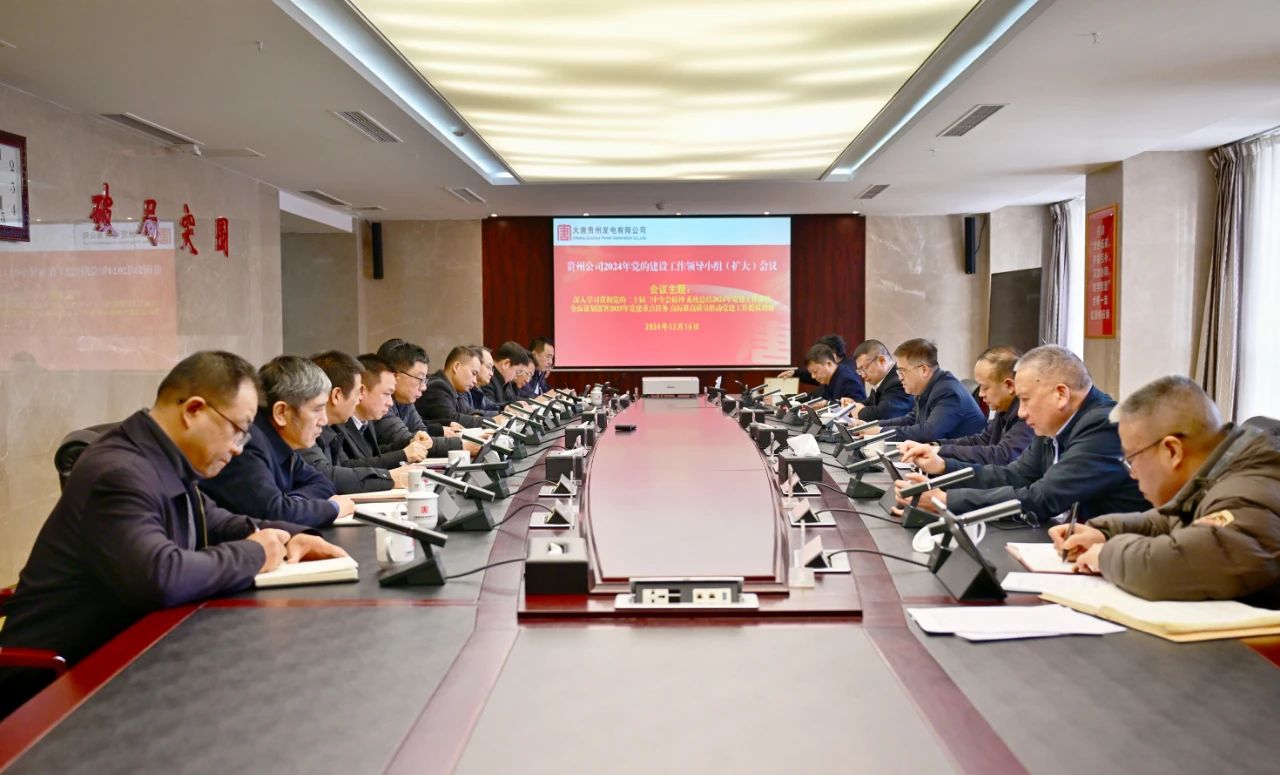 12月16日,大唐貴州發(fā)電公司黨委召開黨的建設(shè)工作領(lǐng)導(dǎo)小組(擴(kuò)大)會(huì)議,深入學(xué)習(xí)貫徹習(xí)近平總書記關(guān)于黨的建設(shè)的重要思想,全面貫徹黨的二十屆三中全會(huì)精神,認(rèn)真落實(shí)集團(tuán)公司黨建工作部署要求,系統(tǒng)總結(jié)2024年黨的建設(shè)工作成果成效,研究部署2025年黨建重點(diǎn)任務(wù),團(tuán)結(jié)帶領(lǐng)系統(tǒng)黨組織、廣大黨員,以更高的政治站位、更嚴(yán)的工作要求、更實(shí)的落實(shí)舉措,高標(biāo)準(zhǔn)高質(zhì)量推動(dòng)黨建工作再上新臺(tái)階,為貴州公司高質(zhì)量完成“十四五”規(guī)劃目標(biāo)任務(wù)和實(shí)現(xiàn)“十五五”良好開局提供堅(jiān)強(qiáng)政治保證。貴州公司黨委書記、董事長(zhǎng)、黨的建設(shè)工作領(lǐng)導(dǎo)小組組長(zhǎng)李奕主持會(huì)議并講話。黨的建設(shè)工作領(lǐng)導(dǎo)小組成員冉怒吟、方世杰、曹云、王秀江參加會(huì)議并結(jié)合分管工作提出要求。