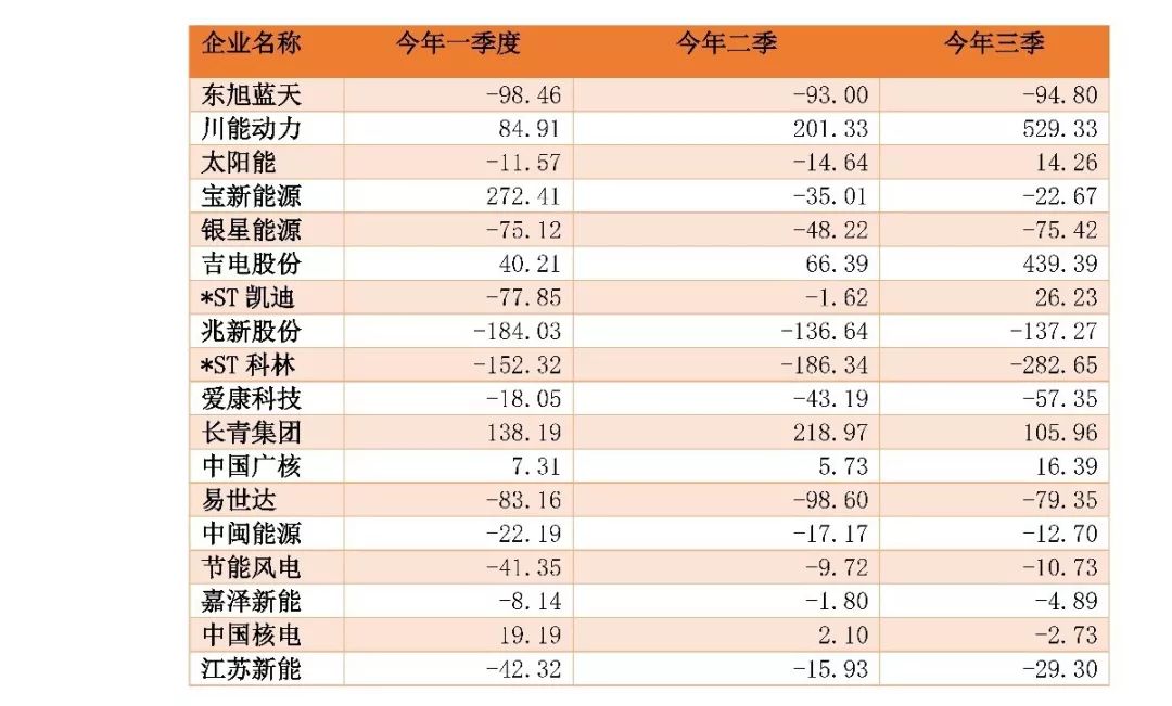 表2:新能源行業(yè)今年以來凈利潤同比變化(%)