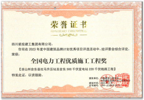近日,在2023(第七屆)中國(guó)建設(shè)行業(yè)品牌發(fā)展峰會(huì)暨2023(第十三屆)中國(guó)建設(shè)行業(yè)創(chuàng)新發(fā)展峰會(huì)的頒獎(jiǎng)典禮上,四川能投建工集團(tuán)被評(píng)為“全國(guó)優(yōu)秀施工企業(yè)”,該公司承建的“涼山州會(huì)東縣拉馬升壓站至?xí)|500千伏變電站220千伏線路工程”獲得“全國(guó)電力工程優(yōu)質(zhì)施工工程獎(jiǎng)”榮譽(yù)稱號(hào)。