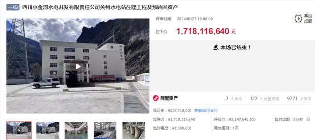1月22日至1月23日,四川省丹巴縣人民法院在阿里司法拍賣(mài)平臺(tái)上,對(duì)四川小金河水電開(kāi)發(fā)有限責(zé)任公司(小金河水電公司)關(guān)州水電站在建工程及預(yù)轉(zhuǎn)固資產(chǎn)進(jìn)行公開(kāi)拍賣(mài),起拍價(jià)為17.181億元,較評(píng)估價(jià)21.476億元打8折,最終以起拍價(jià)成交。