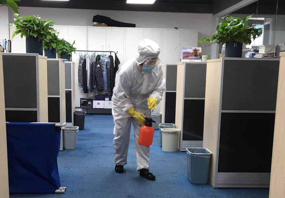 對辦公區(qū)域進行消殺 許明月攝