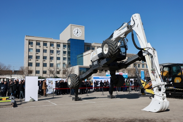 圖為應(yīng)急救援設(shè)備“鋼鐵螳螂”步履式挖掘機