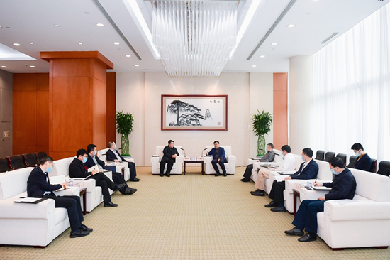 鄧建玲對趙登峰一行的到來表示歡迎,并介紹了華能“十四五”時期戰(zhàn)略規(guī)劃特別是新能源發(fā)展布局等情況。他表示,南水北調(diào)集團(tuán)的成立將為我國提高水資源利用率,優(yōu)化水資源配置格局發(fā)揮重要作用。華能當(dāng)前正加快調(diào)整能源結(jié)構(gòu),著力打造新能源、水電、核電三大支柱。雙方存在良好的合作前景,希望充分發(fā)揮各自優(yōu)勢,深化戰(zhàn)略合作,加快推動跨流域調(diào)水、抽水蓄能電站等領(lǐng)域的合作,為我國加快建設(shè)低碳社會、如期實現(xiàn)3060目標(biāo)作出更大貢獻(xiàn)。