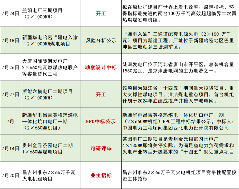 7月份,五大發(fā)電集團均有煤電項目取得了重要進展,多個項目計劃在“十四五”期間開工。
