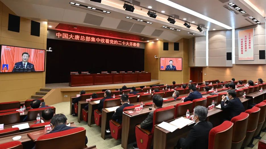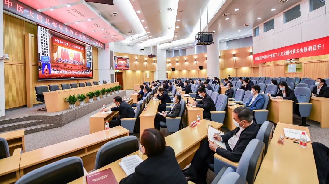 中國大唐黨員干部群眾早早端坐在屏幕前,懷著激動的心情,收聽收看黨的二十大開幕會,認真聆聽習近平總書記所作的報告。集團公司領導劉明勝、時家林、王瑛、曲波、張傳江、彭勇、陶云鵬和總部副經理級及以上干部分別在總部3個會場,系統(tǒng)31991名黨員干部職工在全國1873個會場集中收看開幕會盛況。