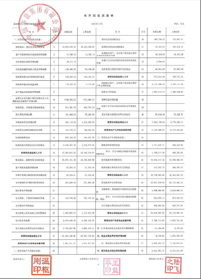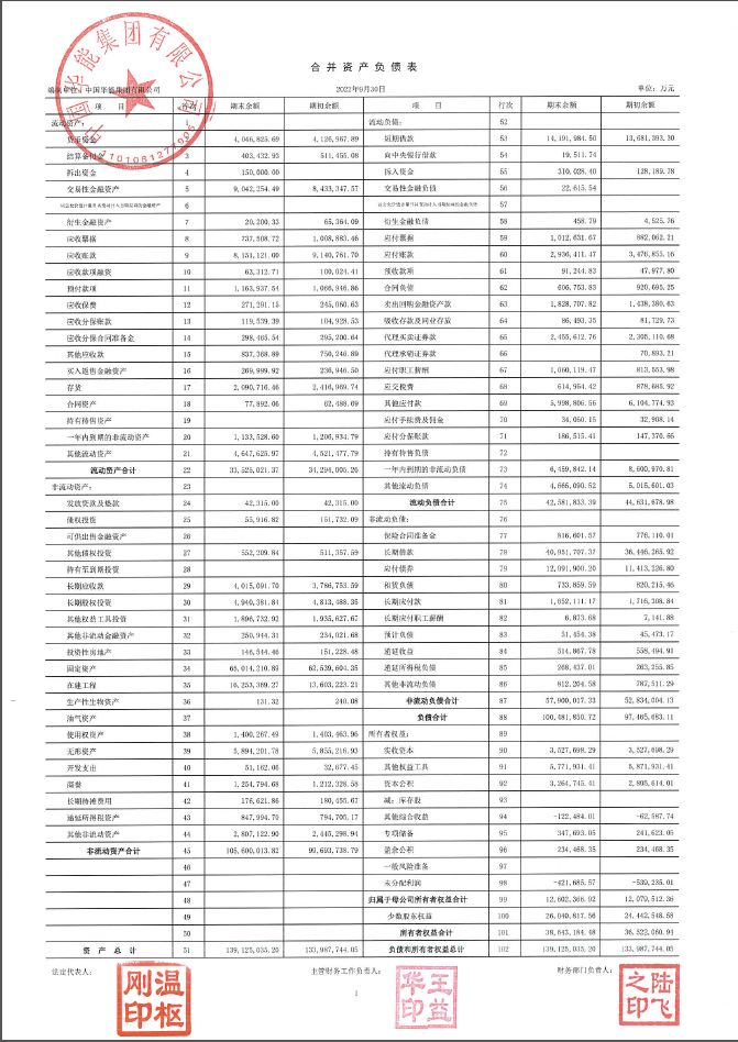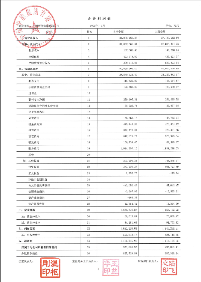 華能集團2022年三季財務(wù)報表