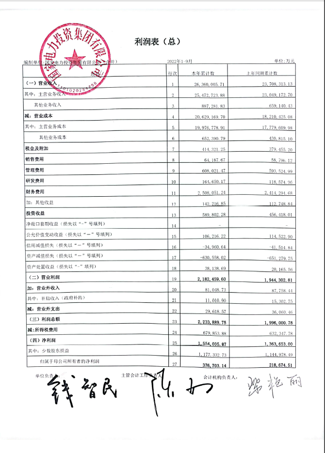 國家電投集團2022年三季財務(wù)報表