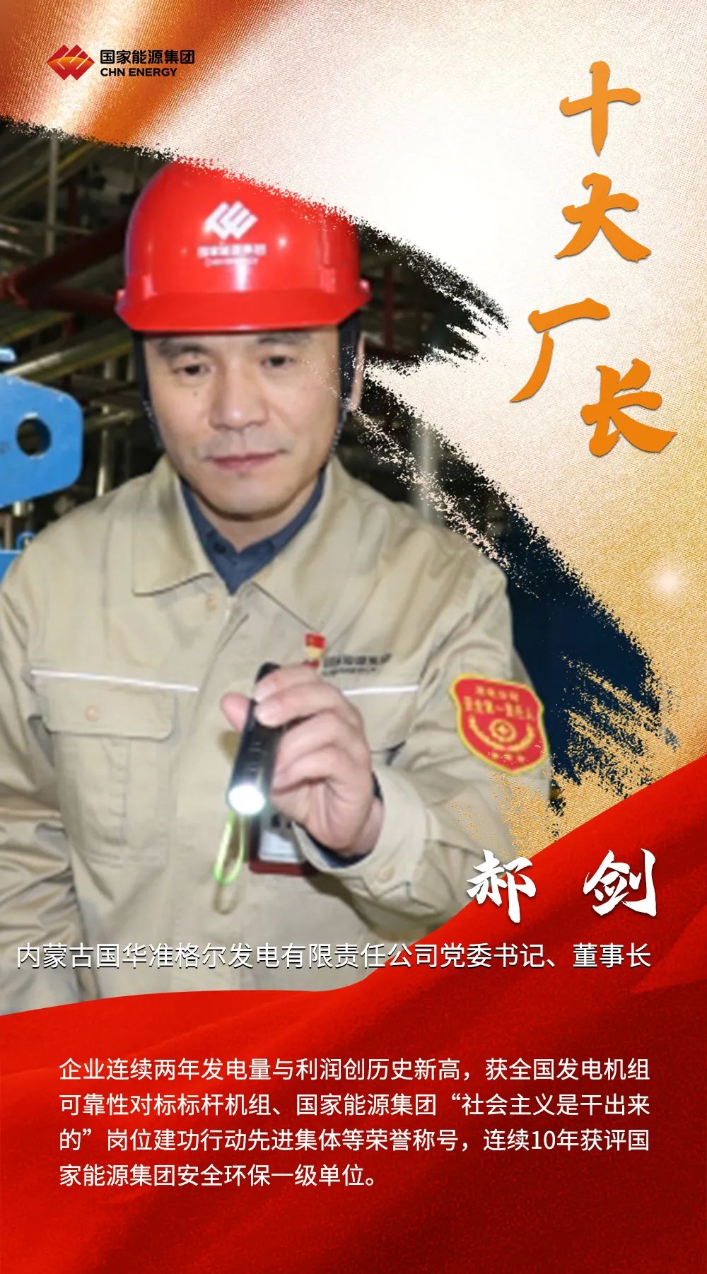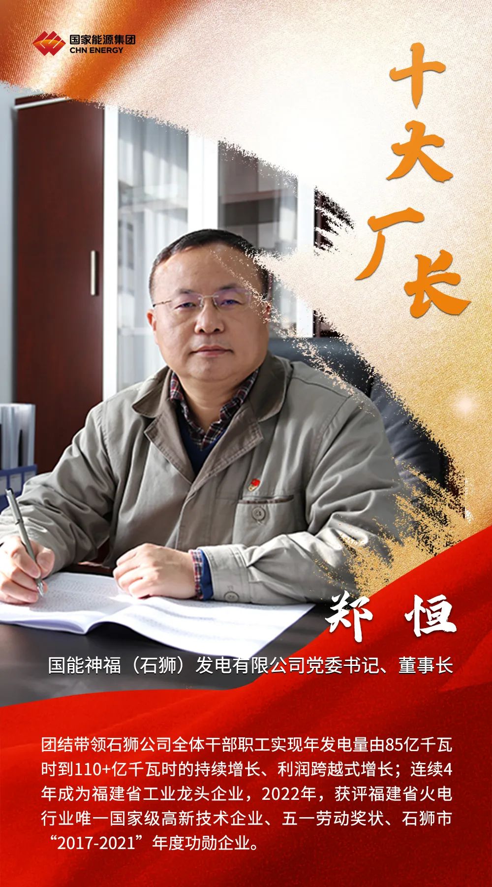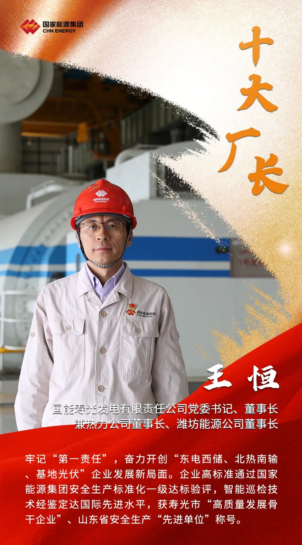 2022年,國家能源集團高質(zhì)高效完成各項任務目標,廣大廠長、礦長作為電廠、煤礦生產(chǎn)運營的總指揮,為集團公司發(fā)揮穩(wěn)定器壓艙石作用作出了重要貢獻。集團公司授予國能壽光發(fā)電公司王恒等10名同志“國家能源集團十大優(yōu)秀廠長”稱號;授予寧夏煤業(yè)雙馬一礦王成等10名同志“國家能源集團十大優(yōu)秀礦長”稱號。