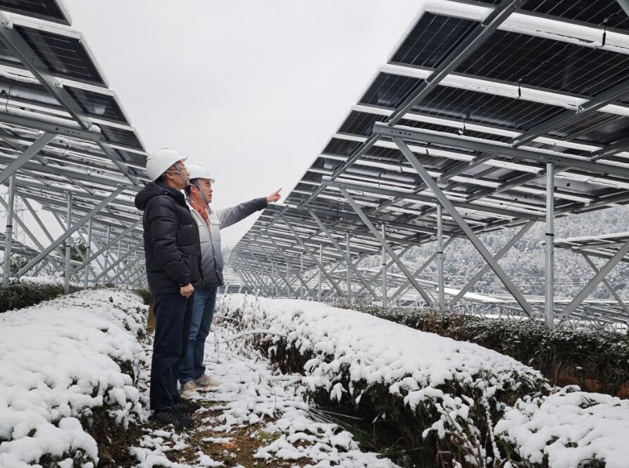 地處四川甘孜州海拔4500米高原上的雅江紅星光伏項目現(xiàn)場,運維人員正踩著厚厚的積雪,在對發(fā)電設備進行仔細檢查。