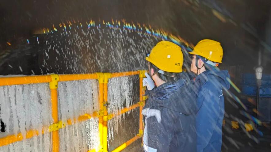 重慶公司聚焦燃料保供、設備運行等方面加大巡檢力度,增加巡檢頻率,對重點區(qū)域逐一檢查、對重要設備逐一排查、對覆冰情況逐一梳理,做到設備防寒防凍工作無死角、無遺漏。組織人員對設備、巡檢道路開展清雪工作,保障高山風電場設備安全運行及巡檢道路暢通無阻,夯實安全生產(chǎn)基礎。