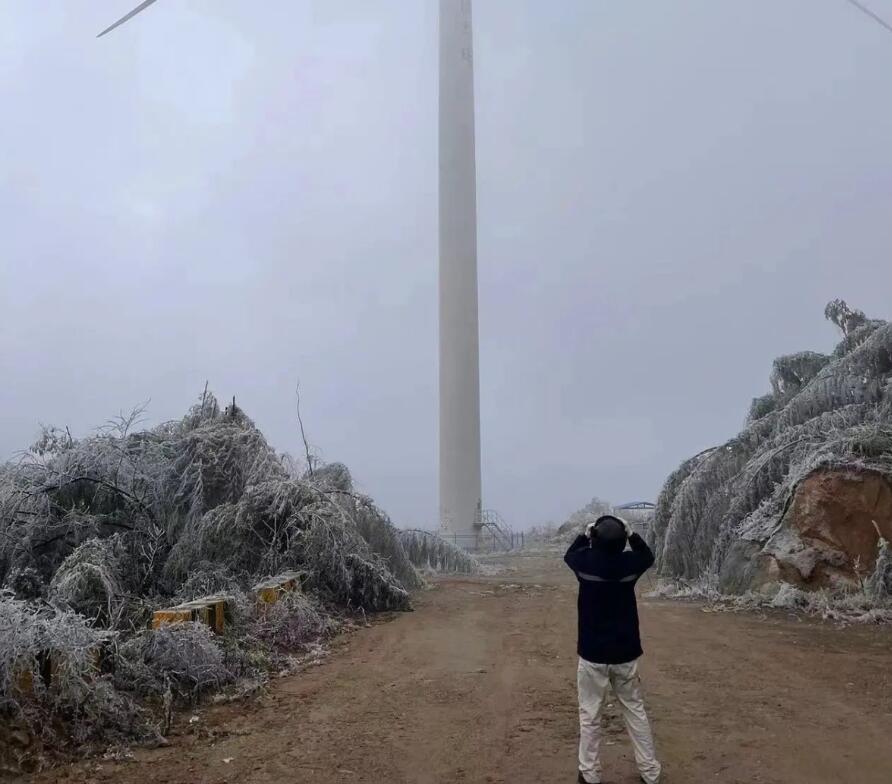 廣西柳州三江風電場積極應對寒潮,加強設備特巡工作。