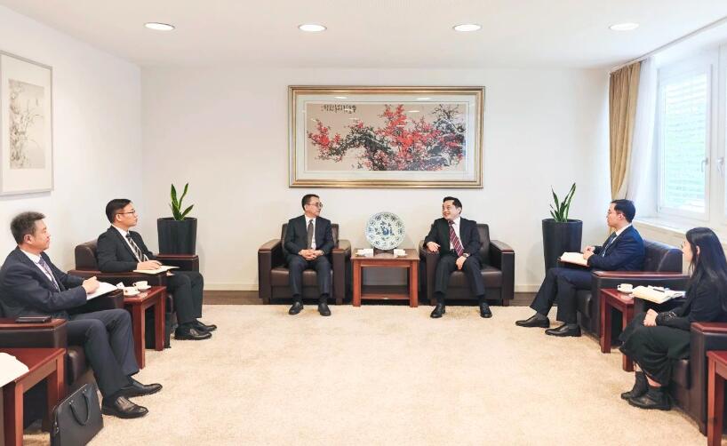 當(dāng)日下午,鄒磊拜訪了我國(guó)駐杜塞爾多夫總領(lǐng)館,與總領(lǐng)事杜春國(guó)就中國(guó)大唐對(duì)德開展合作和商務(wù)往來進(jìn)行了友好交流。