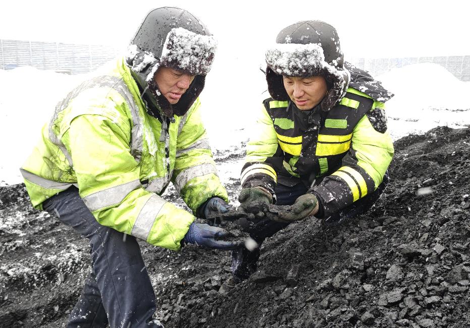 七臺河發(fā)電公司燃料戰(zhàn)線人員檢查燃煤冰凍情況
