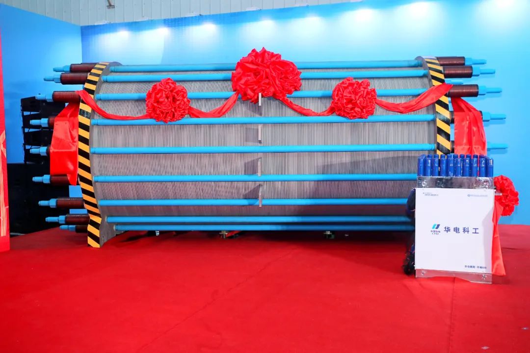1月3日,由中國華電所屬中國華電科工集團(tuán)有限公司自主研發(fā)的3300標(biāo)方堿性電解槽及與中國科學(xué)院聯(lián)合開發(fā)的500標(biāo)方PEM電解槽正式下線、2.5兆瓦PEM電解槽實證平臺投用,標(biāo)志我國可再生能源電解水制氫裝備實現(xiàn)新突破,對加快構(gòu)建新型能源體系、實現(xiàn)“雙碳”目標(biāo)具有重要意義。中國工程院院士彭蘇萍,加拿大工程院院士深圳技術(shù)大學(xué)未來技術(shù)學(xué)院院長劉清俠,天津市北辰區(qū)委書記倪斌,區(qū)委副書記、區(qū)長徐暉,區(qū)委副書記閆峰,副區(qū)長、開發(fā)區(qū)黨工委書記(兼)李維東,集團(tuán)公司戰(zhàn)略規(guī)劃部總監(jiān)吳韶華、科技信息部副主任張宇龍,公司黨委書記、董事長彭剛平,黨委委員、副總經(jīng)理、總工程師李建標(biāo)出席活動。