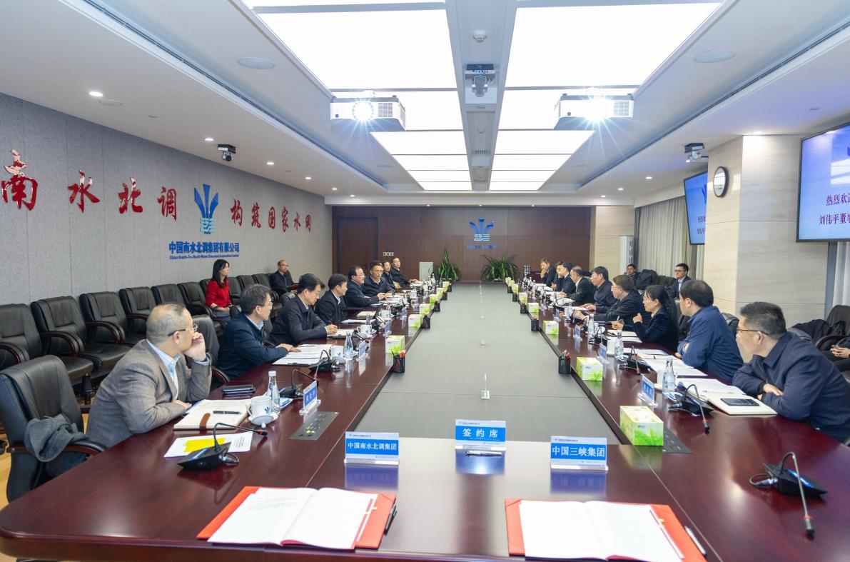 劉偉平回顧了雙方合作發(fā)展歷程,介紹了三峽集團(tuán)改革發(fā)展等情況,對(duì)中國南水北調(diào)集團(tuán)給予的支持和幫助表示感謝。劉偉平表示,三峽集團(tuán)和中國南水北調(diào)集團(tuán)都承擔(dān)保障國家水安全等國家重大戰(zhàn)略使命,雙方主責(zé)主業(yè)高度契合,業(yè)務(wù)互補(bǔ)性強(qiáng),合作空間廣闊。希望雙方以此次簽約為契機(jī),在水資源優(yōu)化配置、清潔能源開發(fā)、生態(tài)環(huán)保、科技創(chuàng)新和人才交流等領(lǐng)域進(jìn)一步深化合作,為服務(wù)經(jīng)濟(jì)社會(huì)高質(zhì)量發(fā)展作出新的更大貢獻(xiàn)。