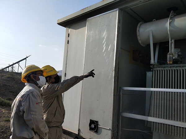 安全員帶領(lǐng)班員進行變壓器本體檢查