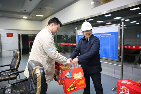 中國電力網(wǎng)訊 金牛昂首辭舊歲,瑞虎闊步迎新春。農(nóng)歷臘月三十,在舉國歡慶的日子,大唐石門發(fā)電公司總經(jīng)理、黨委書記楊萬格,黨委委員、副總經(jīng)理江建鋒,帶領(lǐng)慰問組深入生產(chǎn)現(xiàn)場,向堅守崗位的員工送去誠摯的問候,并與除夕夜在崗員工一同守歲,共迎新春。