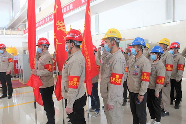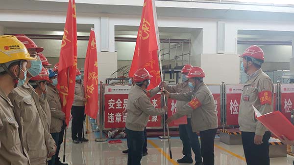 活動(dòng)中,該公司黨委委員、紀(jì)委書記、工會(huì)主席李強(qiáng)同志宣讀了公司黨委印發(fā)《關(guān)于在1號(hào)機(jī)組A級(jí)檢修工作中充分發(fā)揮黨團(tuán)組織作用的通知》的文件要求。公司黨委書記、執(zhí)行董事、總經(jīng)理薛福林同志為“1號(hào)機(jī)組A級(jí)檢修”黨員突擊隊(duì)、黨員服務(wù)隊(duì)、青年突擊隊(duì)分別授旗。生產(chǎn)一線黨員代表、青年代表分別圍繞1號(hào)機(jī)組A級(jí)檢修工作實(shí)際作了《黨員承諾》《青年承諾》。公司黨委委員、副總經(jīng)理錢明雄同志帶領(lǐng)廣大黨員在檢修現(xiàn)場面向鮮紅的黨旗重溫了入黨誓詞。