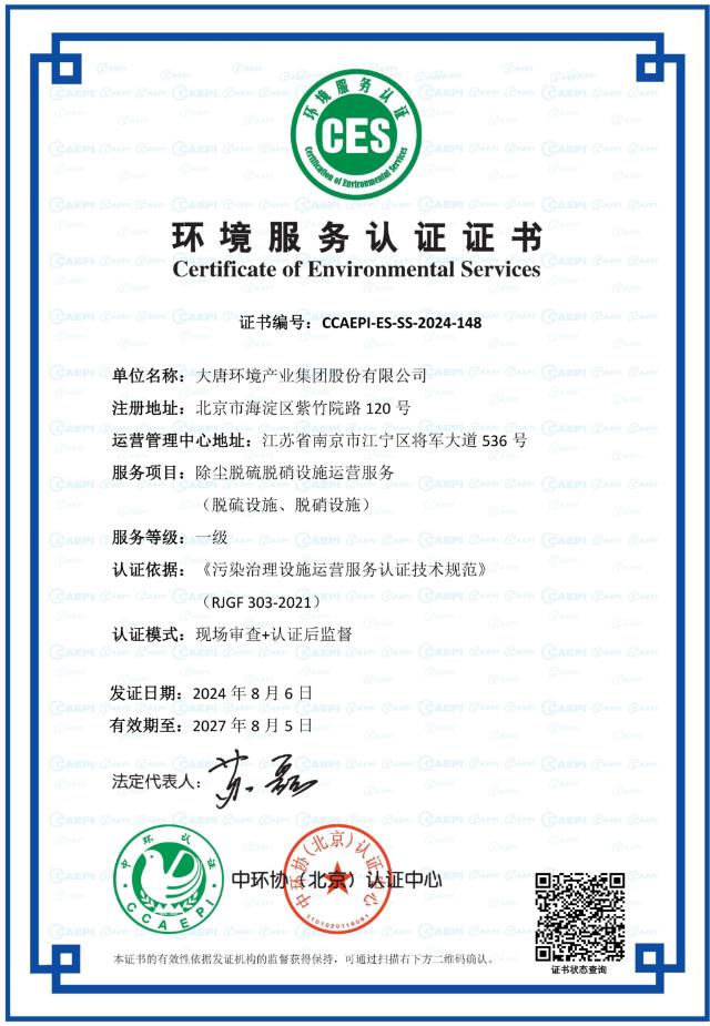 中國(guó)電力網(wǎng)訊(通訊員 黃婉婉)10月16日,大唐環(huán)境特許經(jīng)營(yíng)分公司收到中環(huán)協(xié)(北京)認(rèn)證中心頒發(fā)的“除塵脫硫脫硝設(shè)施運(yùn)營(yíng)服務(wù)”一級(jí)服務(wù)認(rèn)證證書(shū)。這一殊榮不僅是對(duì)環(huán)境公司及分公司在脫硫脫硝領(lǐng)域?qū)I(yè)能力的肯定,更是對(duì)其長(zhǎng)期致力于環(huán)境保護(hù)事業(yè)、推動(dòng)綠色可持續(xù)發(fā)展努力的認(rèn)可。