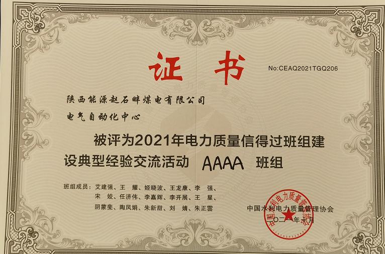 中國電力網(wǎng)訊 10月11日至10月15日, 2021年電力行業(yè)質(zhì)量信得過班組建設(shè)交流發(fā)布會在合肥召開,陜投集團趙石畔煤電設(shè)備部電氣自動化中心被評為“電力質(zhì)量AAAA級質(zhì)量信得過班組”。