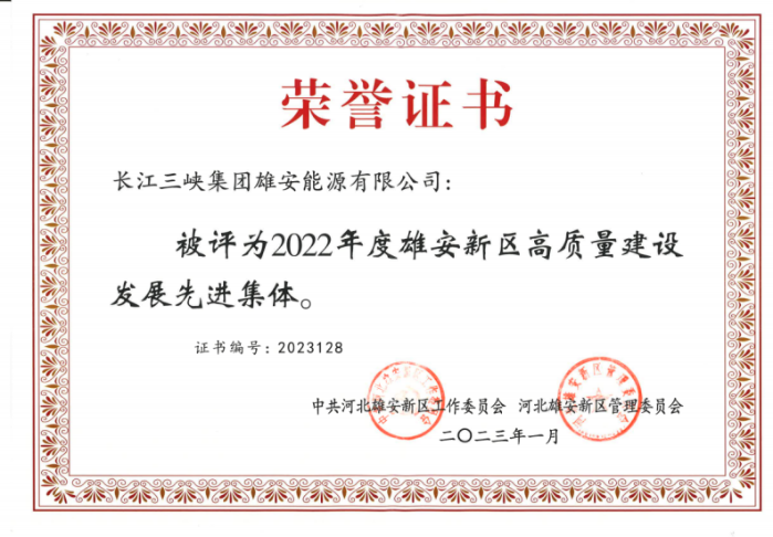2022年,三峽雄安公司全體黨員干部職工牢記“國之大者”,主動服務國家戰(zhàn)略,全面融入雄安新區(qū)建設,工作取得了突破性進展:2022年6月成為唯一一家和新區(qū)三縣簽訂戰(zhàn)略協(xié)議的中央企業(yè),謀劃“清潔能源+生態(tài)環(huán)保+鄉(xiāng)村振興”開發(fā)模式,在三縣均有生態(tài)環(huán)保、清潔能源項目落地,積極展現(xiàn)三峽集團講政治、強擔當良好形象,獲得國務院國資委官方媒體報道并受到新區(qū)管委會高度肯定。