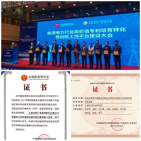 大唐環(huán)保研究院科技創(chuàng)新成果連獲兩項中國能源研究會榮譽