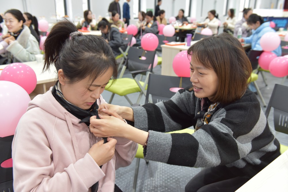 當天的培訓分職場禮儀賦能、清雅妝造課堂、服裝搭配指南三個部分。幾位老師通過專業(yè)的視角,針對女職工的需求,現(xiàn)場示范指導,向她們傳授實用的美麗“秘籍”。女職工們紛紛拿出化妝品和絲巾跟隨老師實操實練,現(xiàn)場氣氛輕松愉悅,笑聲不斷。