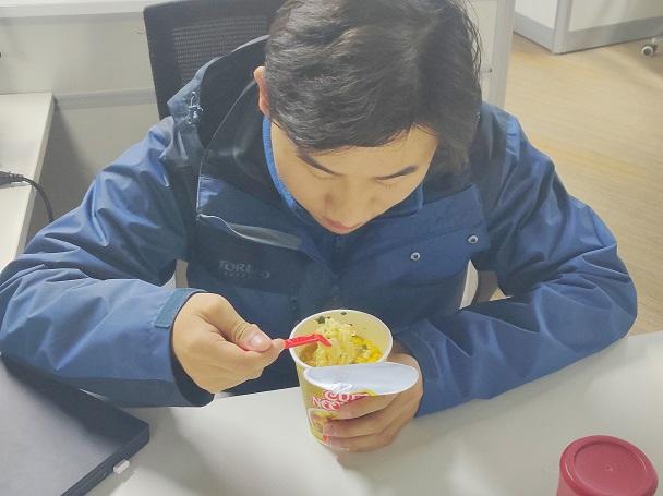 “最大的困難還是吃飯,大年三十晚上我們還能點(diǎn)到外賣,從初一開始就沒有店鋪營業(yè)了,泡面就是我們的工作餐?!蓖踝雍栏袊@道。