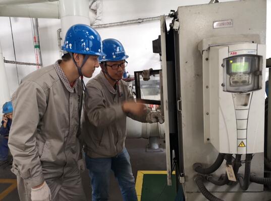 羅博文正在現(xiàn)場向師傅學(xué)習(xí)