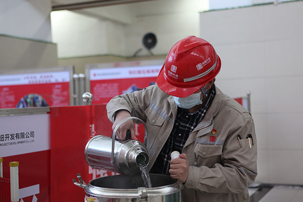 工會(huì)為檢修現(xiàn)場提供熱水服務(wù)