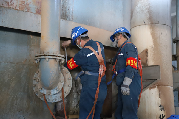 一個黨支部就是一座堡壘,一個黨員就是一面旗幟,疫情防控嚴峻形勢下,灰硫車間黨支部戰(zhàn)斗堡壘在助力安全生產(chǎn)中迸發(fā)出強大力量。3月16日1點40,吸收塔漿液漏泄,影響脫硫系統(tǒng)安全運行,存在環(huán)保參數(shù)超標風險,轉(zhuǎn)機班在接到缺陷后,立即組織全員上陣,黨員廖振海,李亞洲、楊得志在檢修中率先垂范,爭做表率,全身上下被漿液淋濕浸透也絕不后退半步,利用自制的木頭塞經(jīng)過5次嘗試臨時封堵住漏點,并用6mm鐵板自行焊接制作密封盒,內(nèi)部澆灌水泥,徹底消除了漏泄的隱患,確保了環(huán)保設(shè)備安全運行。灰硫車間在對灰場2號除灰管道巡視檢查中發(fā)現(xiàn)灰管道漏泄,為了避免發(fā)生環(huán)保事件,機械班迅速組織人員搶修。工作中,黨員王雷、吳侃,工作組成員夏延鵬沖鋒在前,進入到冰冷的水中用卡具封堵漏點,由于搶修及時避免了環(huán)保事件的發(fā)生,保證了我廠除灰渣系統(tǒng)安全可靠運行?;伊蜍囬g黨支部在特殊時期,積極響應(yīng)廠黨委的號召,嚴格執(zhí)行我廠各項工作部署,黨員帶頭沖鋒一線,堅決守住人身、設(shè)備、環(huán)保底線,體現(xiàn)“硬核”擔當,用行動展示基層黨支部昂揚向上的精神面貌。