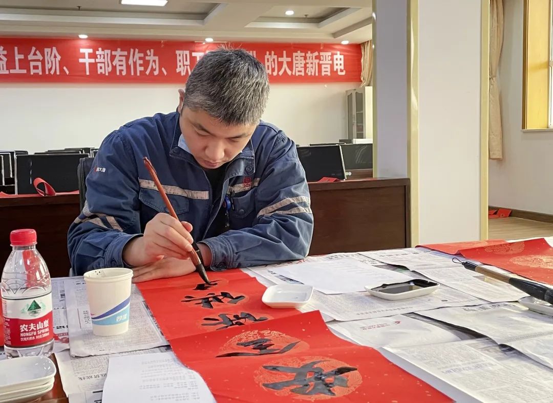 他寫的多幅與安全生產相關的春聯(lián)作品被張貼在公司辦公樓門口和生產廠區(qū)各區(qū)域大門上,成為“門面擔當”,助力營造生產現(xiàn)場安全文化氛圍的同時,也獲得電氣班“神筆馬良”的美稱。